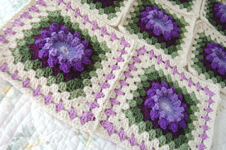 I've been quite busy with a steady stream of custom blankets over at tillie tulip. One request came in for a daisy afghan using purples, so here is the latest in the daisy granny square saga...